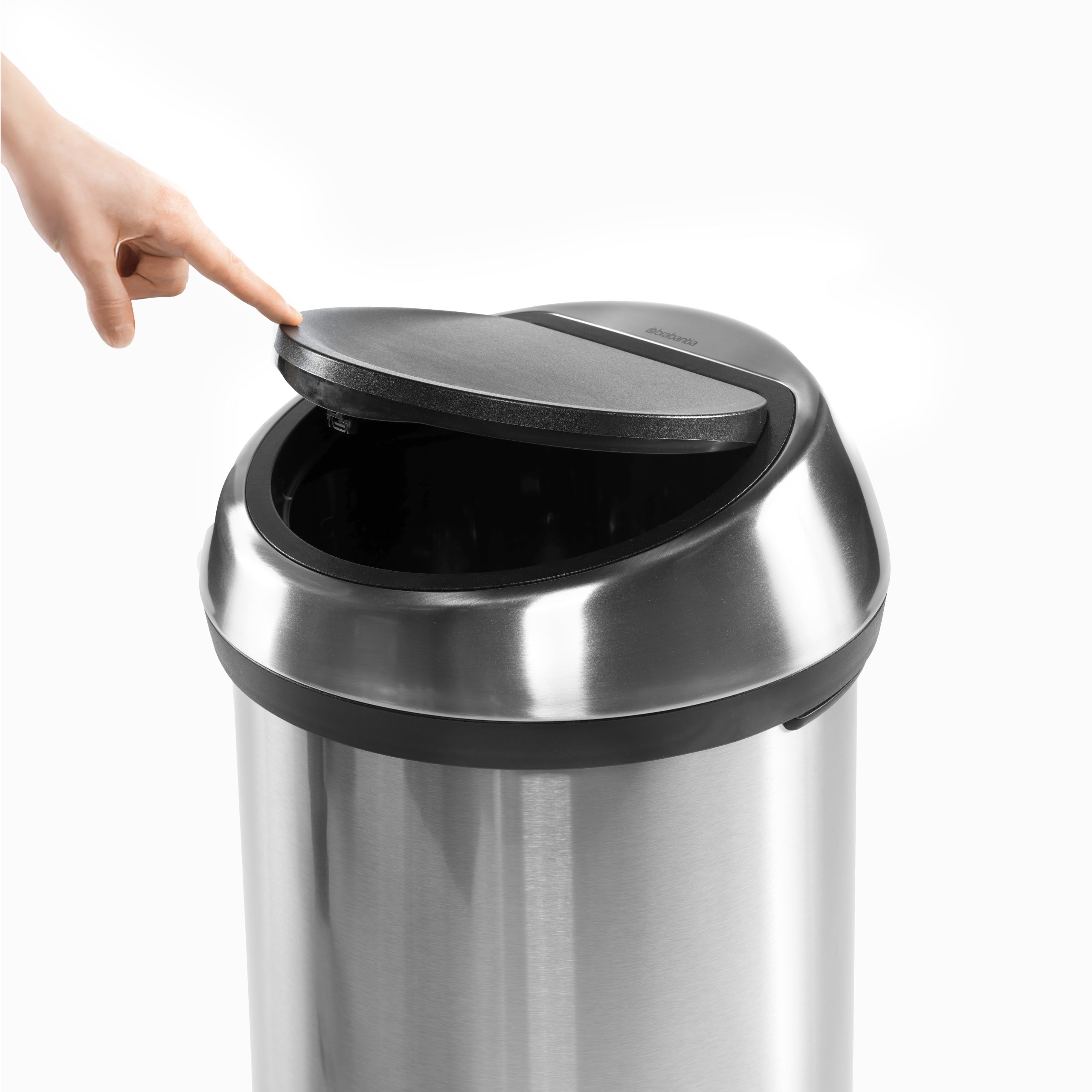 „Touch Bin“, in Edelstahl matt fingerprint proof, Deckel Kunststoff schwarz, mit Sofftouch-System, integrierte Müllsackhalterung, Kunststoff schwarz, geeignet für Müllsack 60 Liter