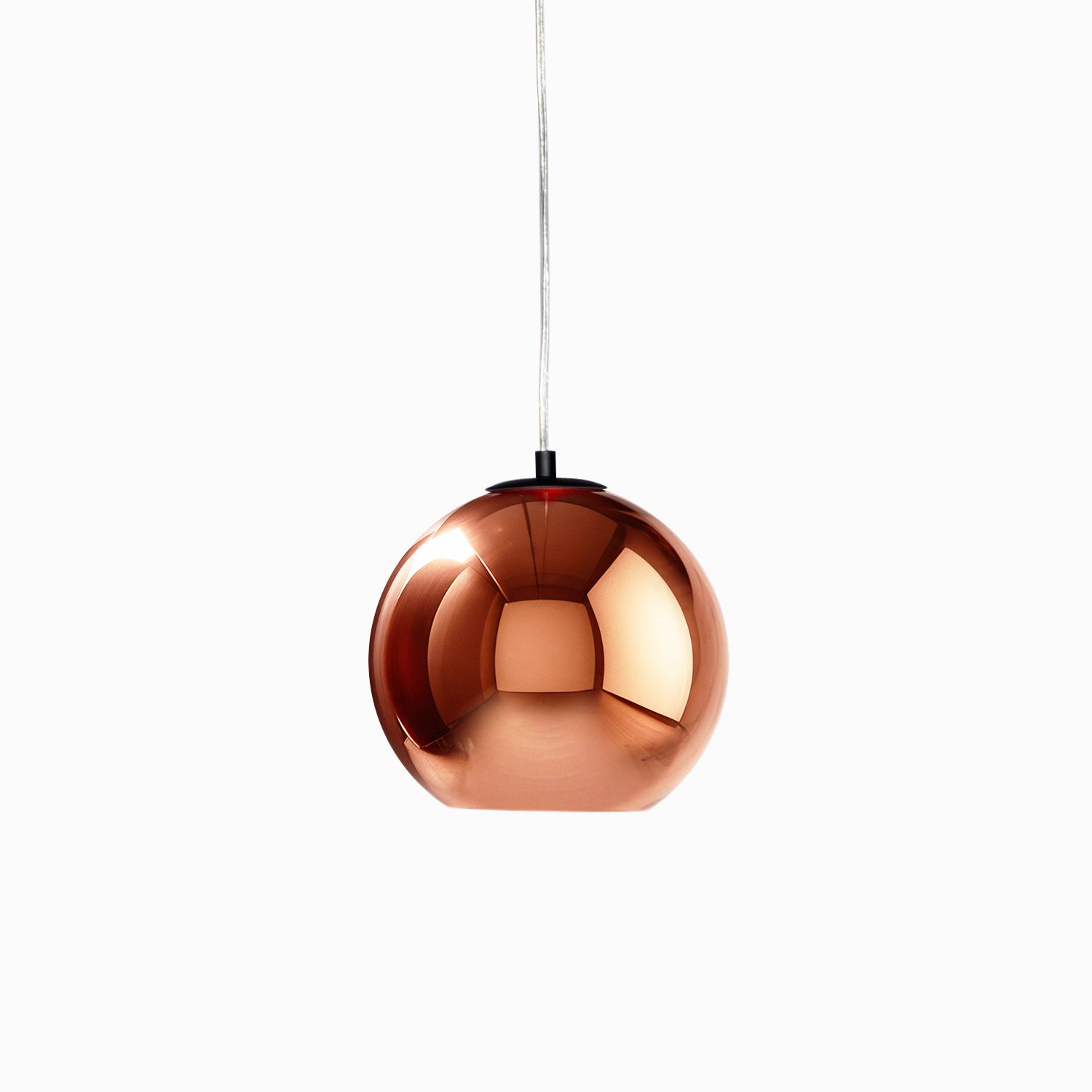 „Copper Shade 25“, Tom Dixon Lampenschirm aus kupferbeschichtetem Acryl, Aufhängung transparent, Kabellänge 250 cm, Halogen 1x 28W, warmweiß, 2800K
