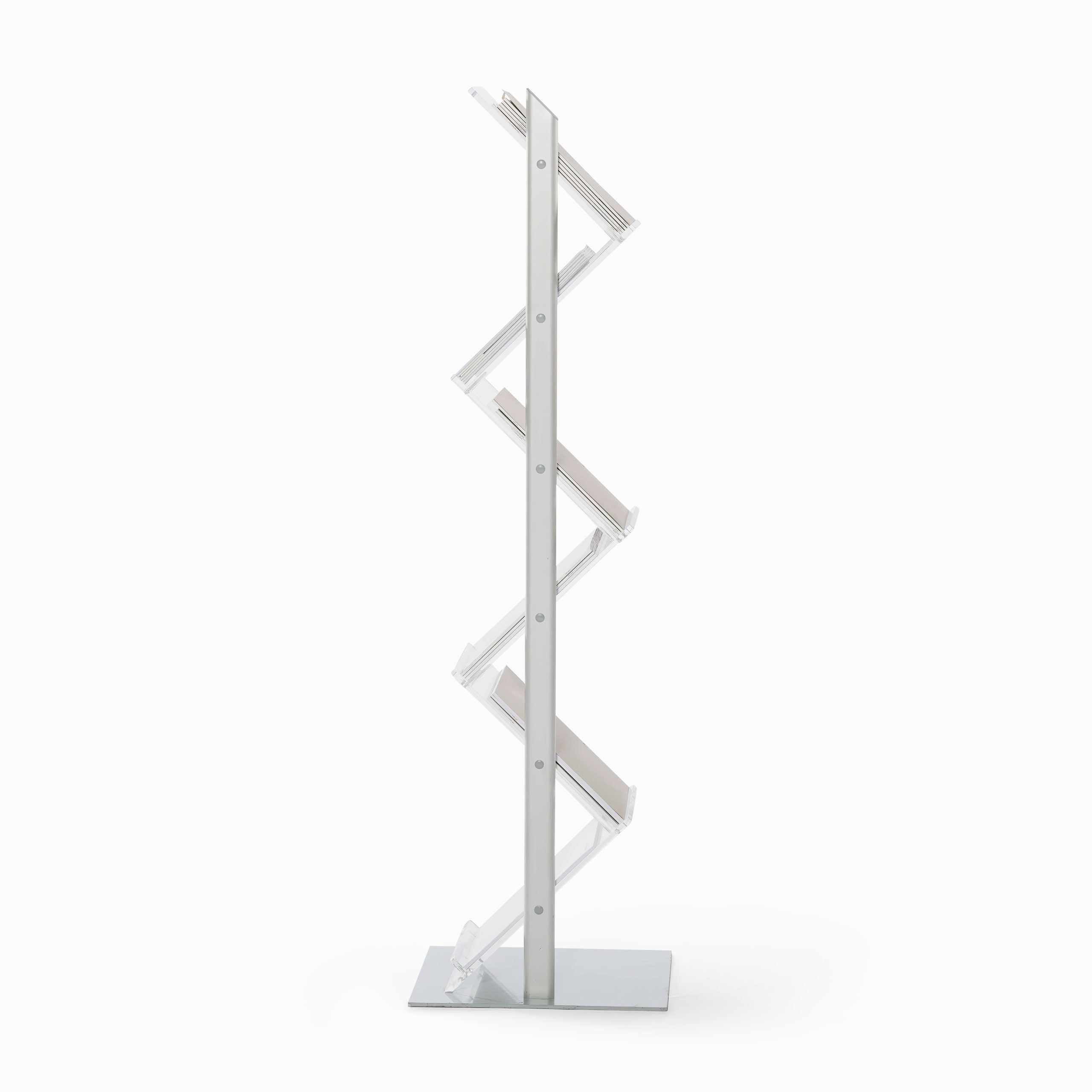 Für 6x DIN A4, Prospektablagen zickzack in Acrylglas, Gestell und Fuß in Stahl pulverbeschichtet, grau