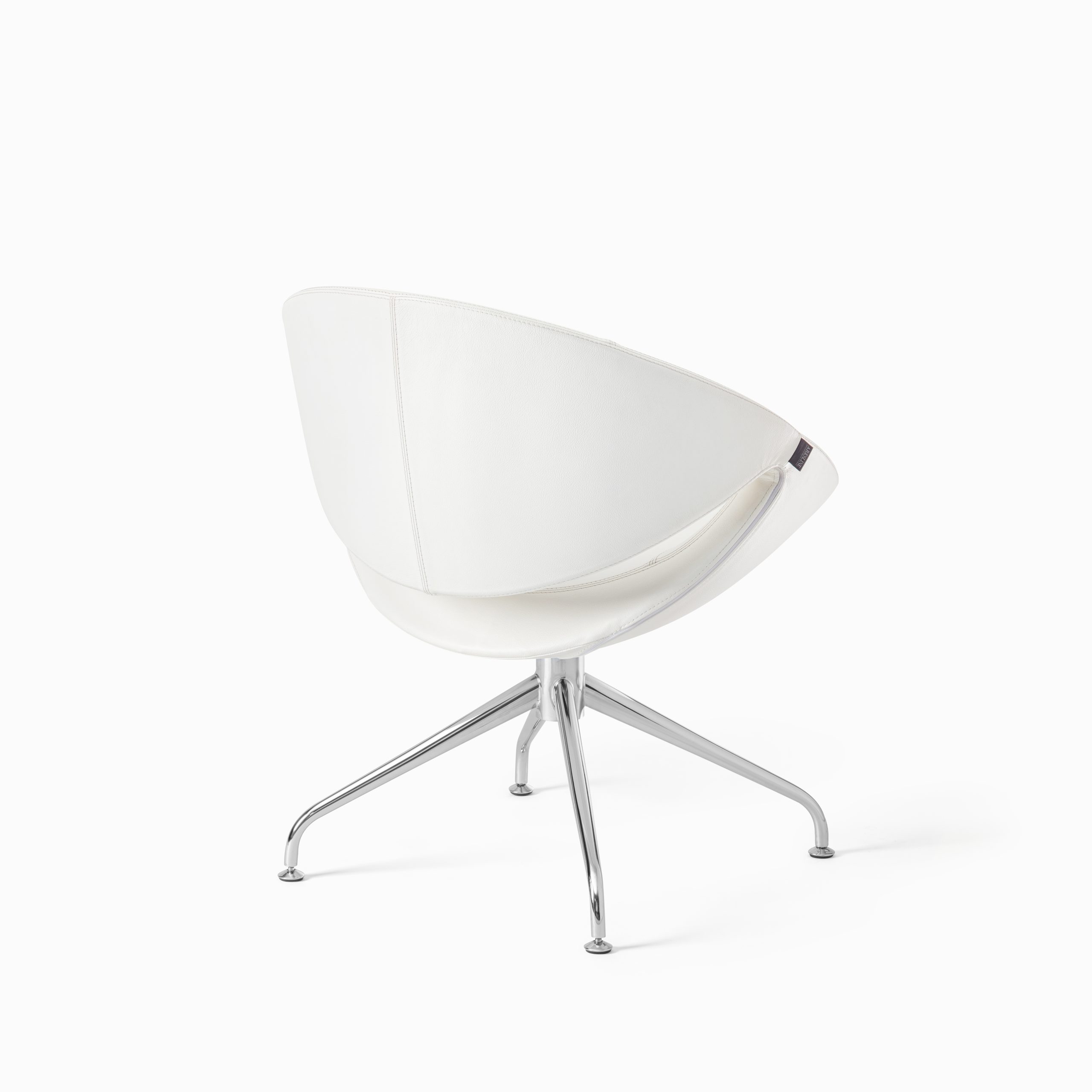 „Mya“, Sitzschale Leder gepolstert, weiß, Vier-Fuß-Zentral-Gestell in Stahlrohr, verchromt