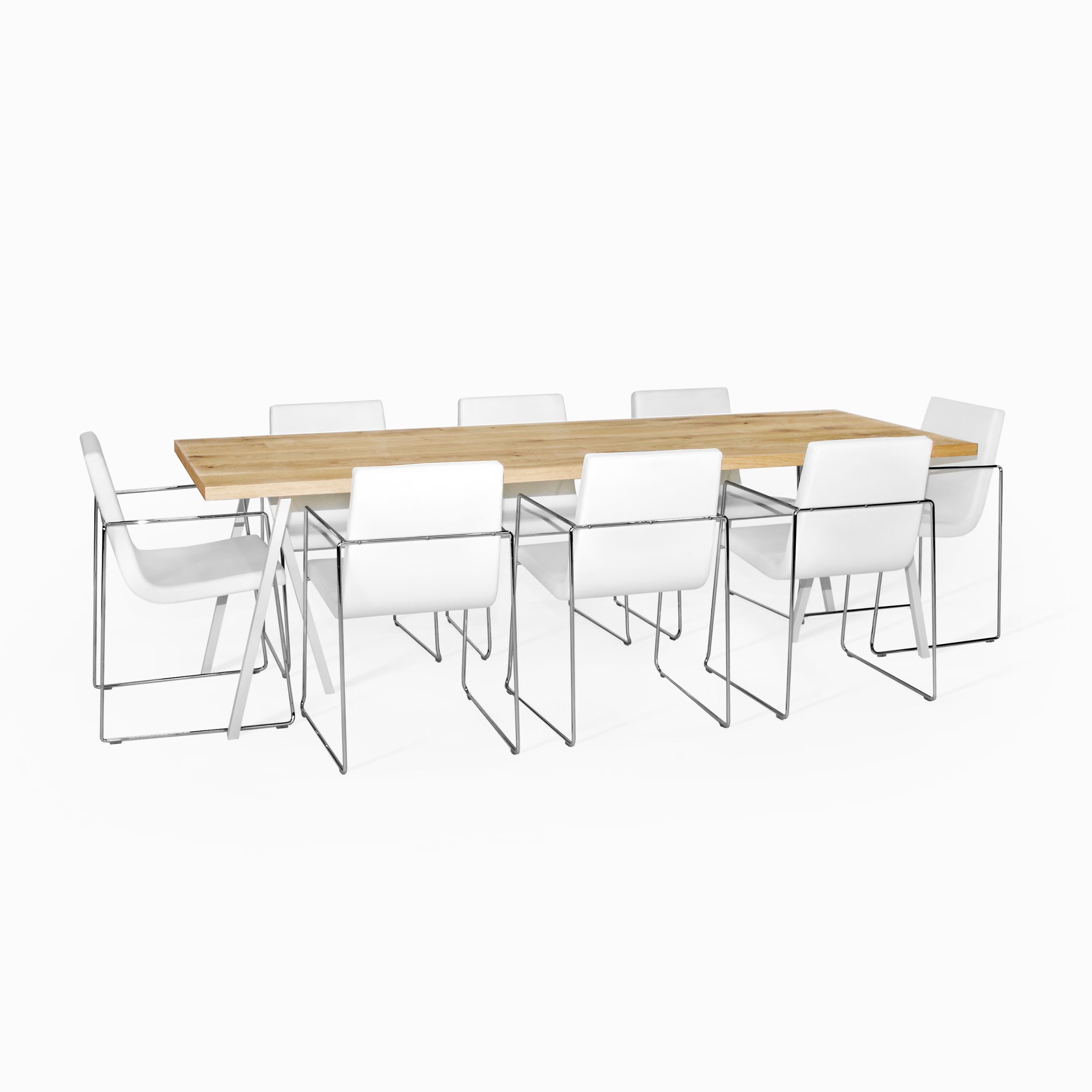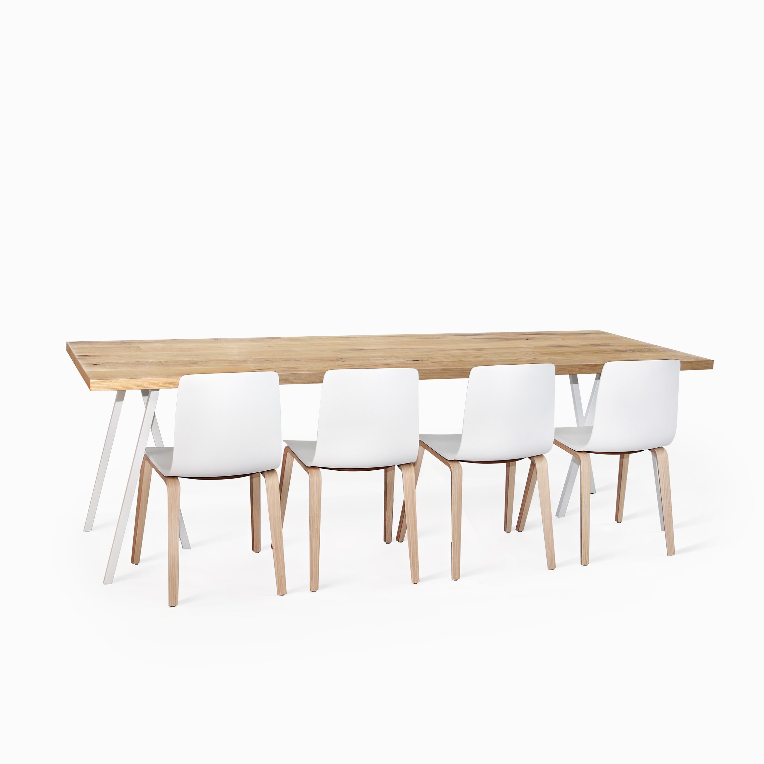 Tischplatte in Echtholz, Eiche astig, Tischböcke „Loop“ in Stahl pulverbeschichtet, weiß