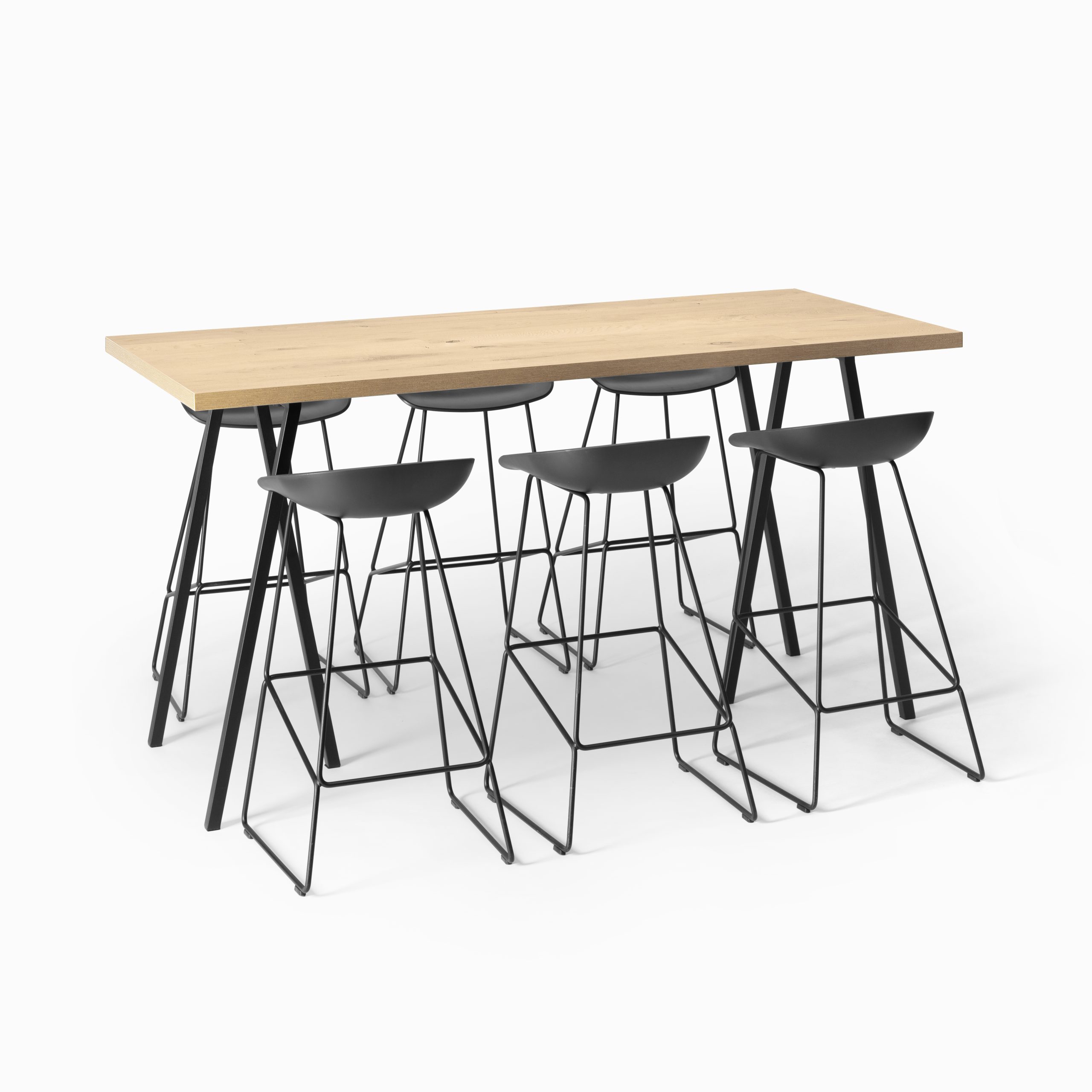 Tischplatte in Echtholz, Eiche astig, Tischböcke „Loop“ in Stahl pulverbeschichtet, schwarz