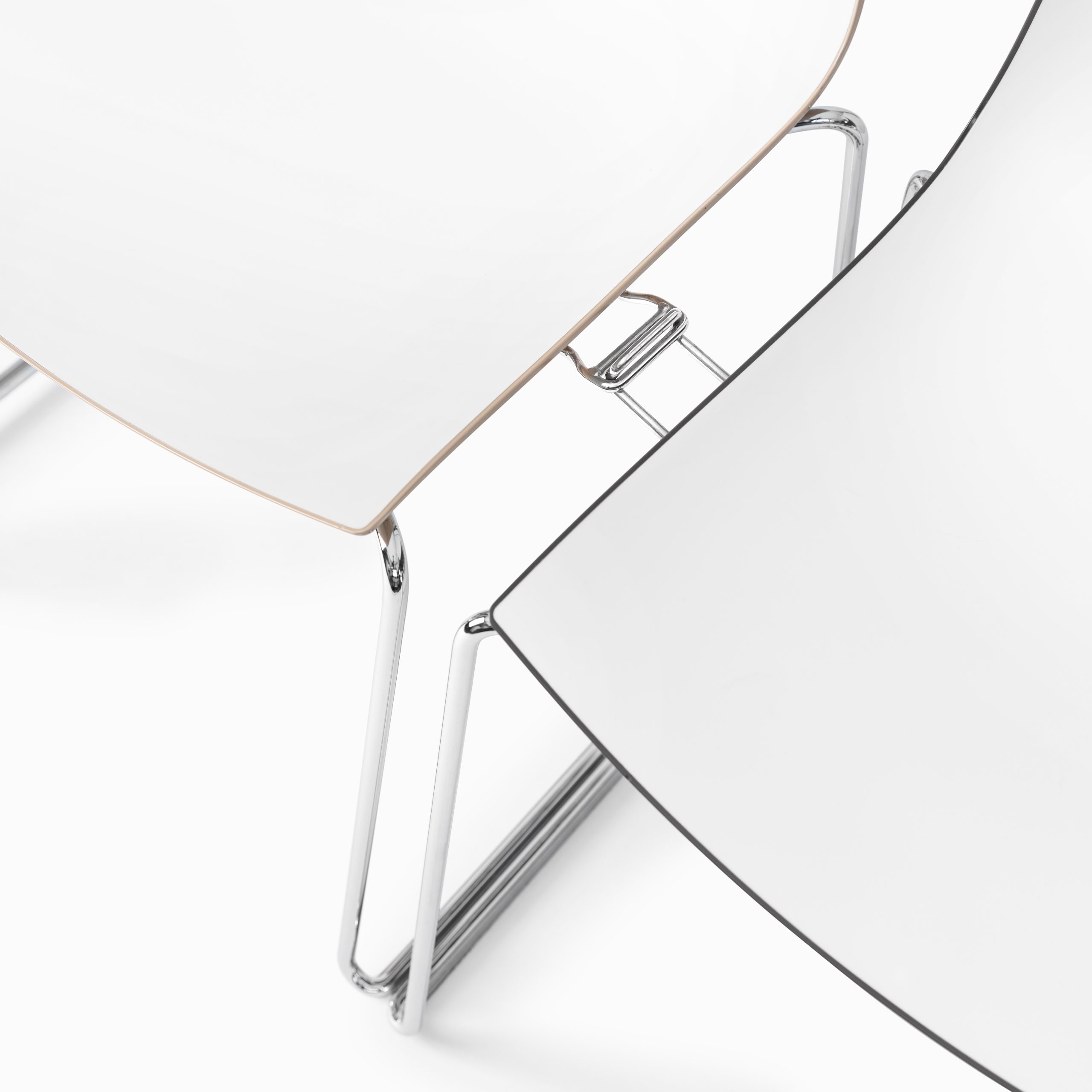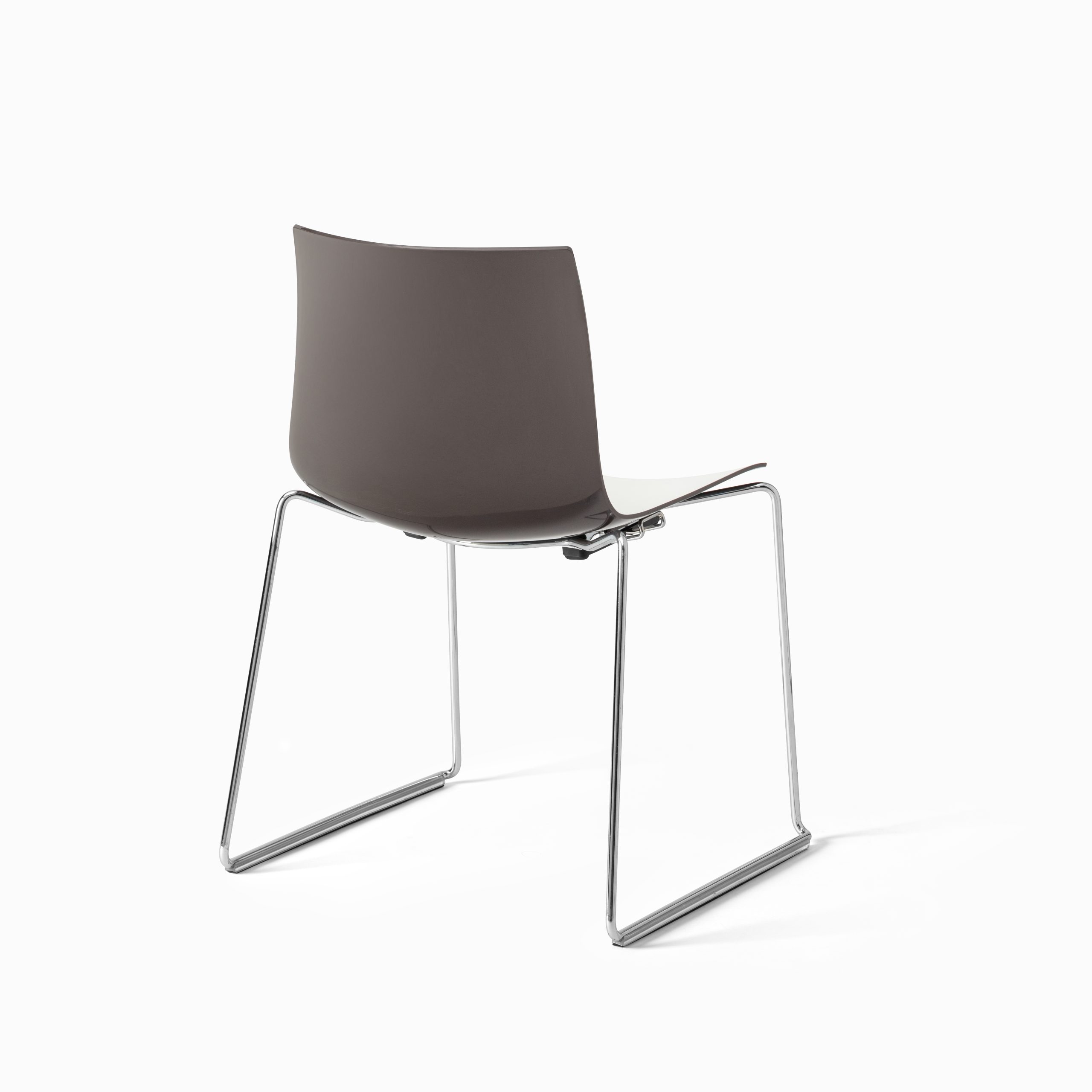 „Catifa“, Sitzschale aus Polypropylen, weiß-sepia, Kufengestell in Stahlrohr verchromt, Reihenverbindung möglich, stapelbar