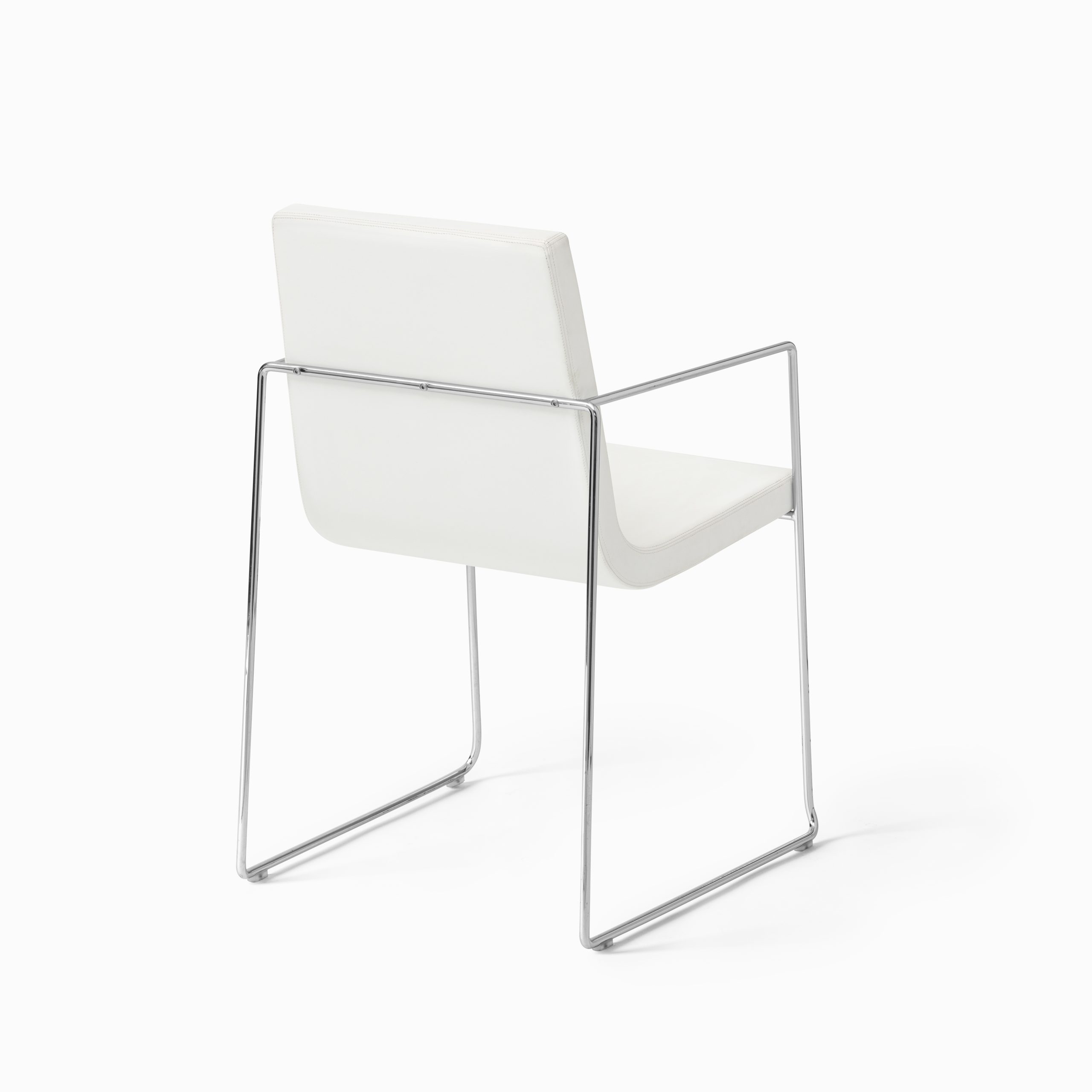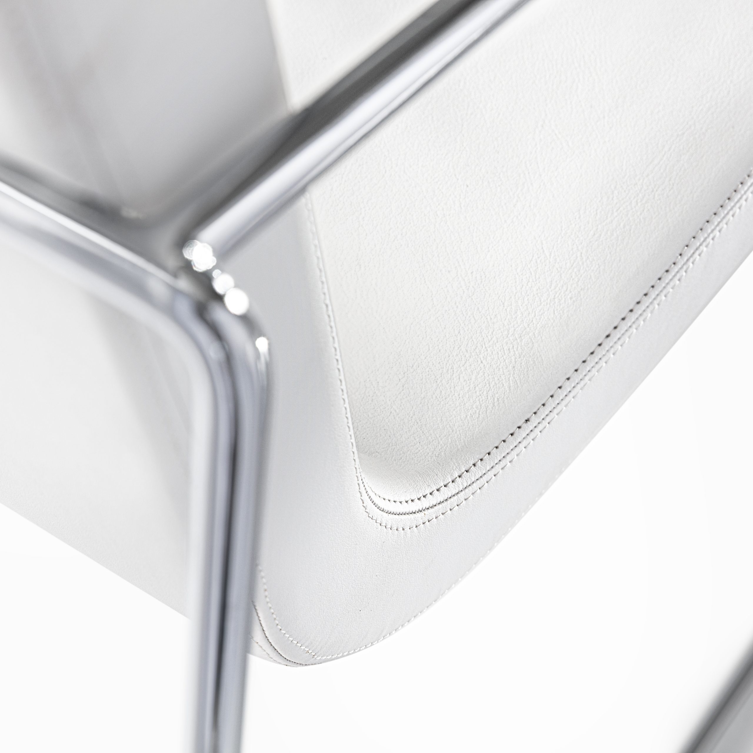 Sitzschale Leder gepolstert, weiß, Gestell in Stahlrohr verchromt, mit Armlehnen, stapelbar