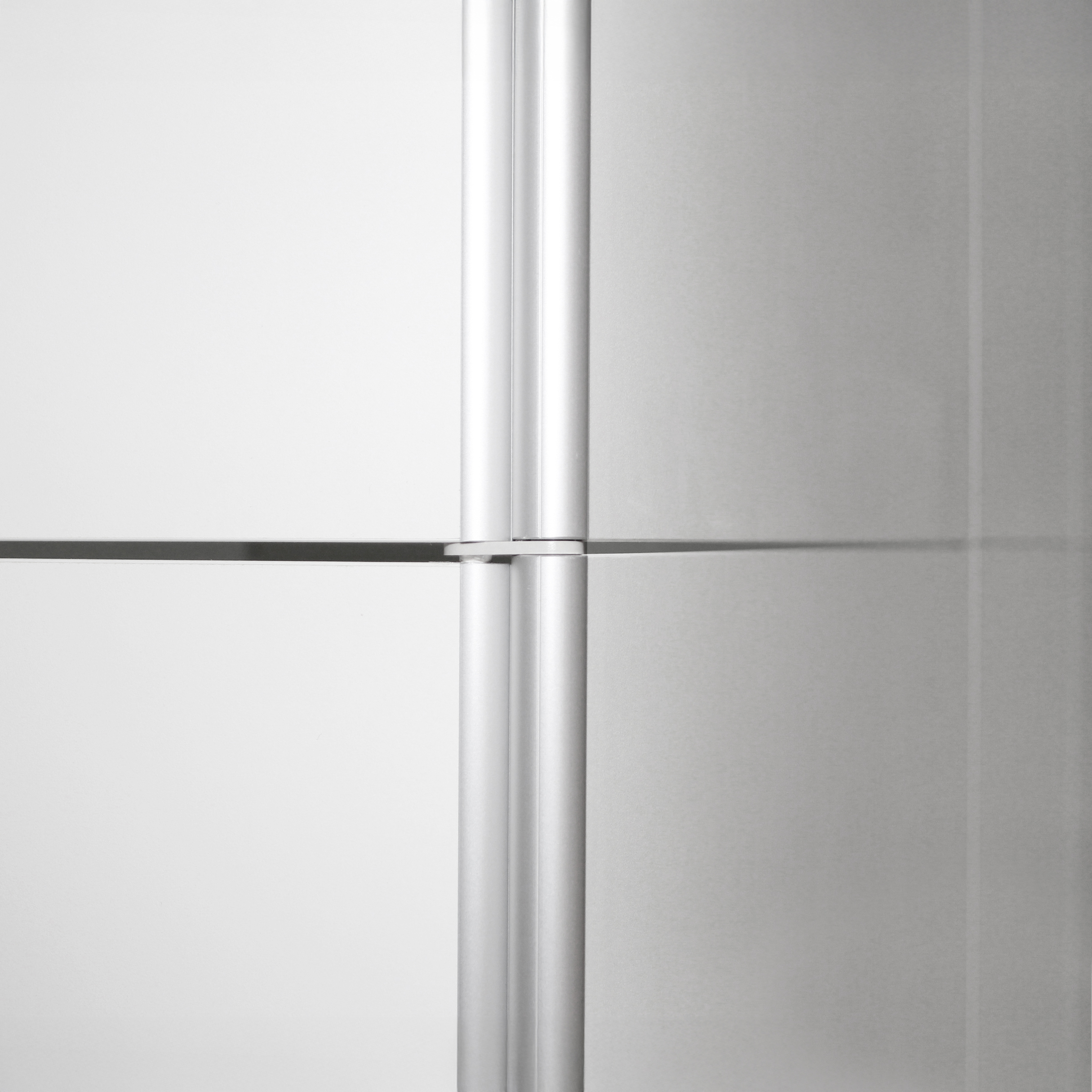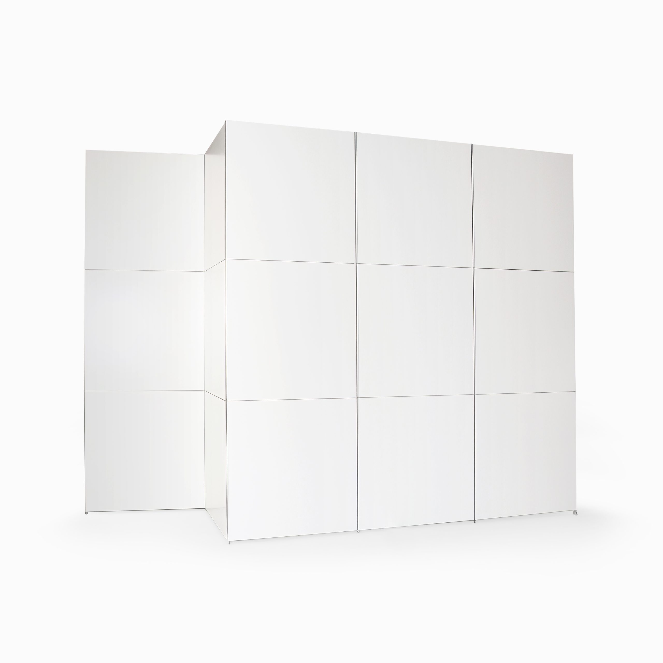 modulares & flexibles System aus quadratischen, melaminharzbeschichteten Leichtbauplatten, weiß, Längskanten mit Aluprofil silber